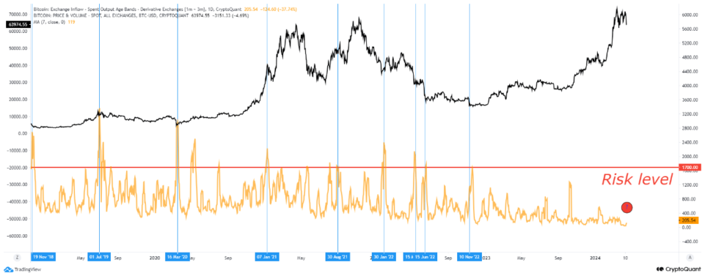 The indicator within the chart above has one other qualification hooked up: it solely tracks inflows from whales which have been holding for a minimum of 1 month and at most 3 months.