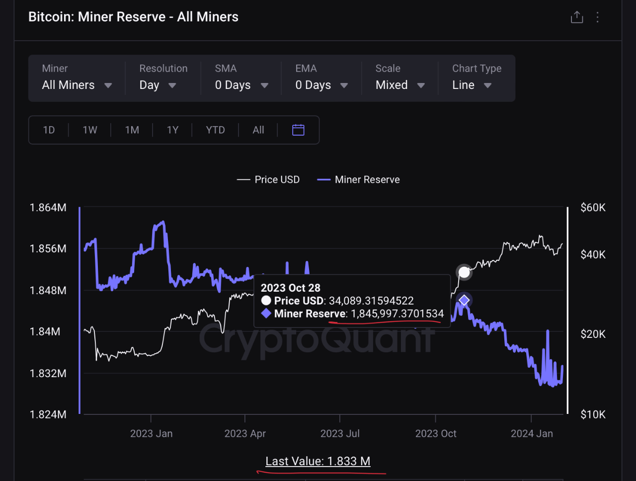 In a CryptoQuant Quicktake post, an analyst discussed the latest selling pressure exerted on the market by miners. The metric of interest here is “Miner Reserves,” which tracks the total amount of Bitcoin currently held in miners’ wallets.