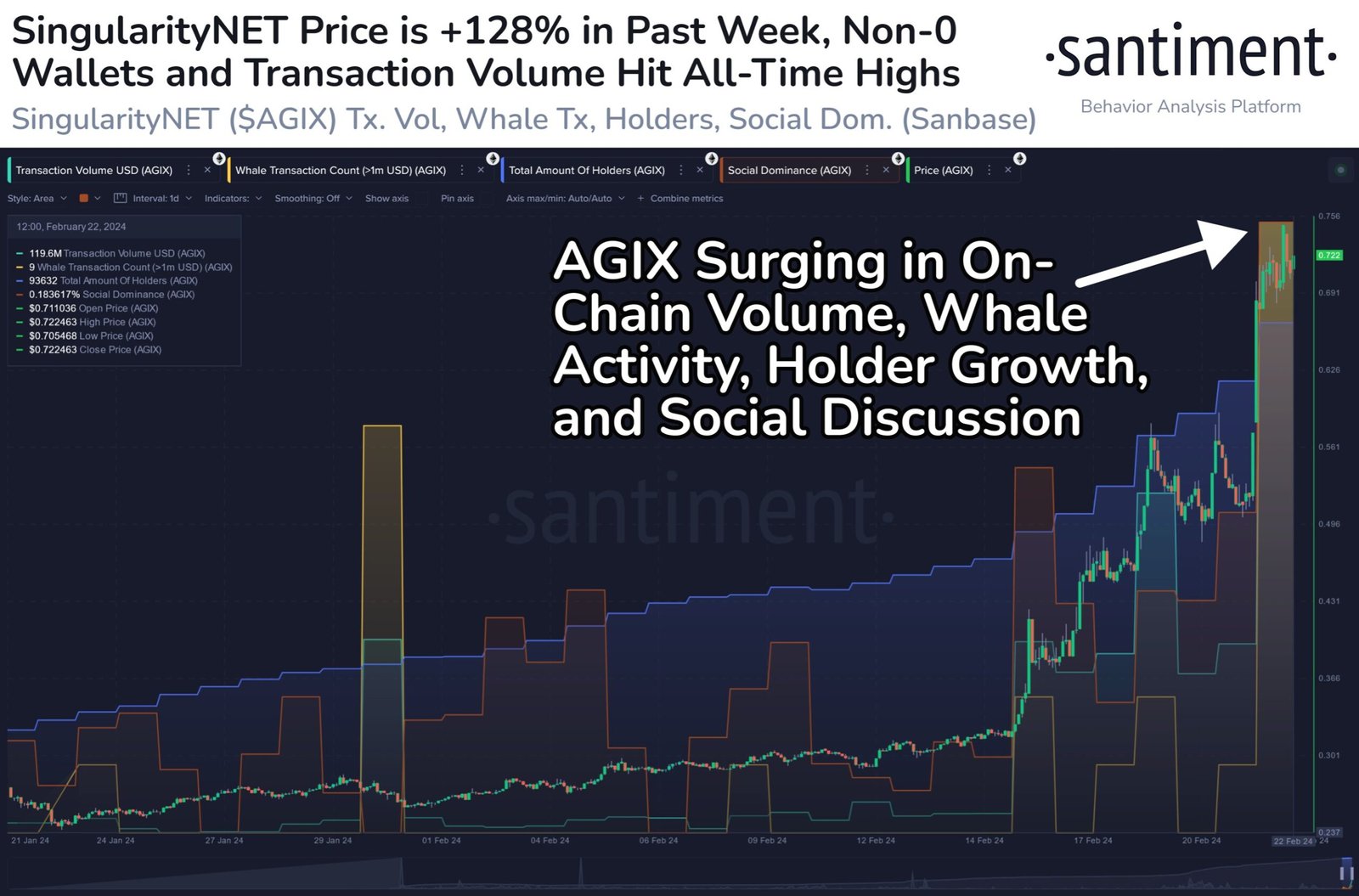 SingularityNET (AGIX) rises 128% as on-chain activity heats up